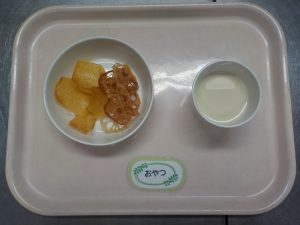 おやつ:豆乳、おやさいチップス